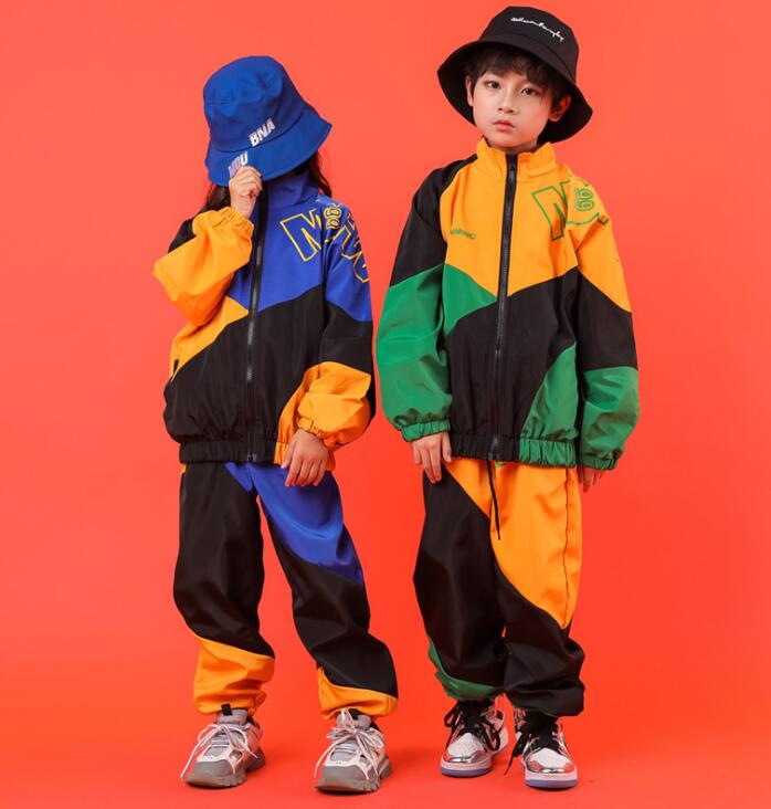 二個送料無料 子供 ダンス衣装 セットアップ キッズ ヒップホップ ジャズ 男の子 女の子 兼用 舞台 演出服 男女お揃い演出服 ステージ衣装 hiphop jazz コート+サルエルパンツ 子供服 かっこいい 110-180