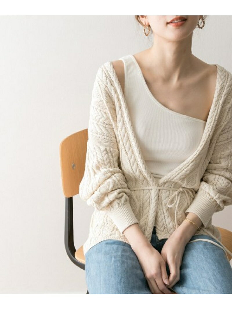 カーディガンやシースルートップスのインナーに大変重宝する、注目の1枚です。